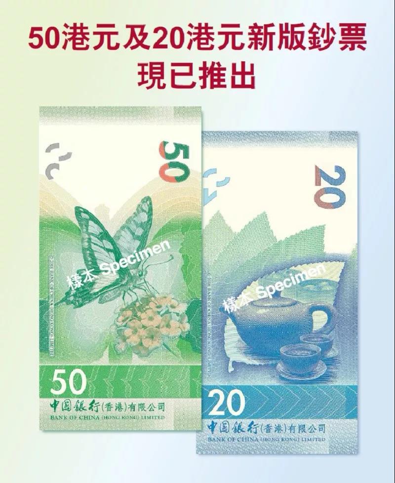【中银香港】新版50及20港元钞票已推出!